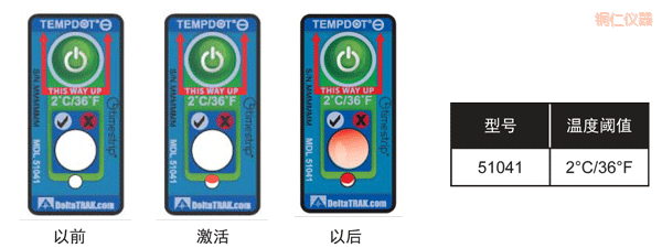 TempDot™ Minus標(biāo)簽需存儲在室溫下,并且必須在反應(yīng)溫度 以上被激活。激活是通過用手指推壓,標(biāo)簽 底部的小窗口變?yōu)榧t色或部分變紅色以指示激活,但激活后并不需要保持紅色。當(dāng)使用了上述反應(yīng)溫度 標(biāo)簽的產(chǎn)品暴露于閾值以下的溫度,白色的大窗口變?yōu)榧t色或部分紅色,在反應(yīng)溫度 以上將溫度標(biāo)簽用 于產(chǎn)品。如果一個產(chǎn)品暴露于閾值以下的溫度,白色的大窗口變紅色或部分紅色,TempDot™ Minus標(biāo)簽 提供即時的視覺指示。為達(dá)到最佳效果,標(biāo)簽應(yīng)保持垂直位置,,其反應(yīng)期間,紅色箭頭須指向上方。