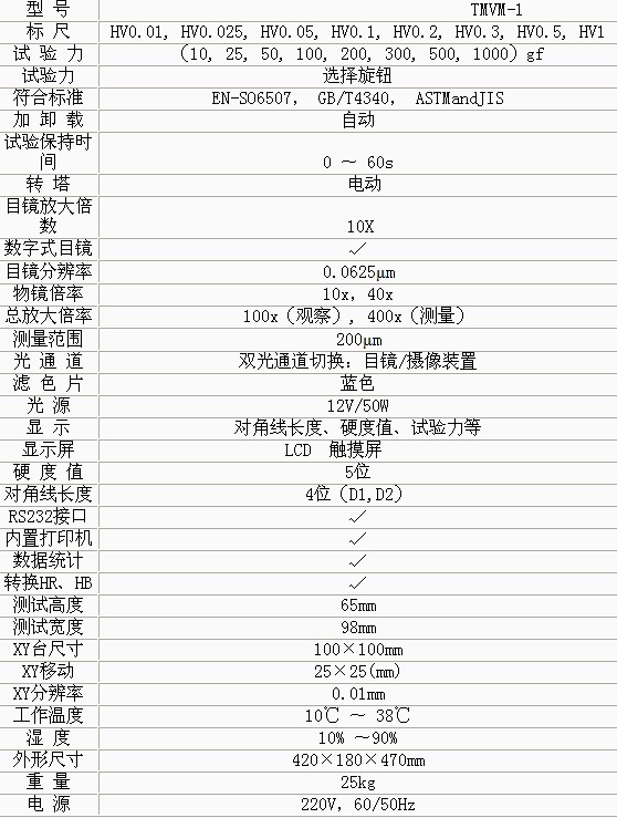 產(chǎn)品概述: • TMVM-1觸摸屏顯微維氏硬度計硬度計儀器在機械上采用精密的設(shè)計,威海維氏硬度計,在電氣上由CPU控制試驗過程,顯微維氏硬度計,在光學(xué)上采用高清晰光學(xué)測量系統(tǒng)、光電傳感等新技術(shù)。 • 適用于測量微小、薄形試件、表面滲鍍處理后的零件和對瑪瑙、玻璃、陶瓷等脆性材料的顯微和努氏硬度的測定 以及涂層、表面覆層、層壓金屬、熱處理碳化層和淬火硬化層的深度與硬度梯度的測定。是科研機構(gòu)、工廠及質(zhì)檢部門進行研究和檢測的理想的硬度測試儀器。 功能特點: • 操作由面板上的觸摸鍵輸入,維氏硬度計算,能預(yù)置試驗力保荷時間、選擇維氏或努氏試驗方法、調(diào)節(jié)測量光源的強弱等功能。 • 在LCD液屏上顯示測量壓痕長度、硬度值、測量次數(shù)、轉(zhuǎn)換值等,維氏硬度計 TIME,并通過打印機輸出,dhv 1000維氏硬度計,還能通過RS232接口與計算機連網(wǎng)。 • 硬度計還可根據(jù)用戶特殊需求配置CCD裝置、視屏裝置和攝像裝置 技術(shù)參數(shù):