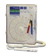 DeltaTrak的溫度/濕度/露點圓圖記錄儀, 型號14013(110V)和14014(220V), 提供溫度和相對濕度同步監(jiān)測。它有四個不同的圖表速度:12小時、24小時、7天及31天。圖表有oF或oC兩種。記錄范圍為-30℃?50°C,相對濕 度10%~90%。該記錄儀也可計算露點。有一個易閱讀的液晶顯示屏和全功能的溫度超范圍警報特點。