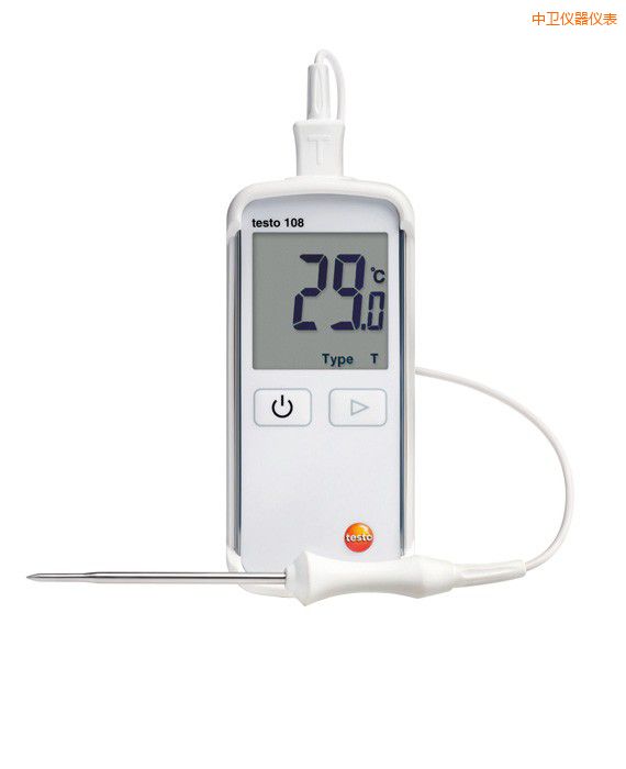 訂貨號:0563 1080 testo 108 防水型食品溫度儀。含主機、一個刺入式T型熱電偶探頭及保護軟套。防水等級 IP 67。