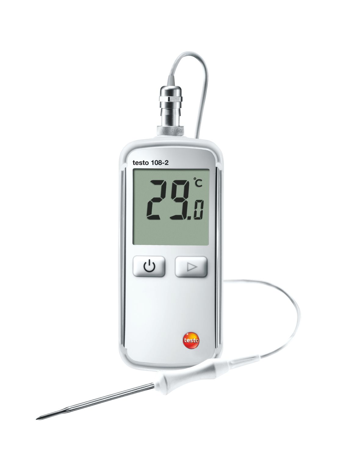 容易操作 儀器和探頭防水等級 IP 67 包括保護(hù)軟套和T型熱電偶探頭 滿足HACCP和EN 13485法規(guī)要求 testo 108-2 防水型食品溫度儀。含主機(jī)、一個旋入式可鎖T型熱電偶探頭、保護(hù)軟套和出廠報(bào)告。